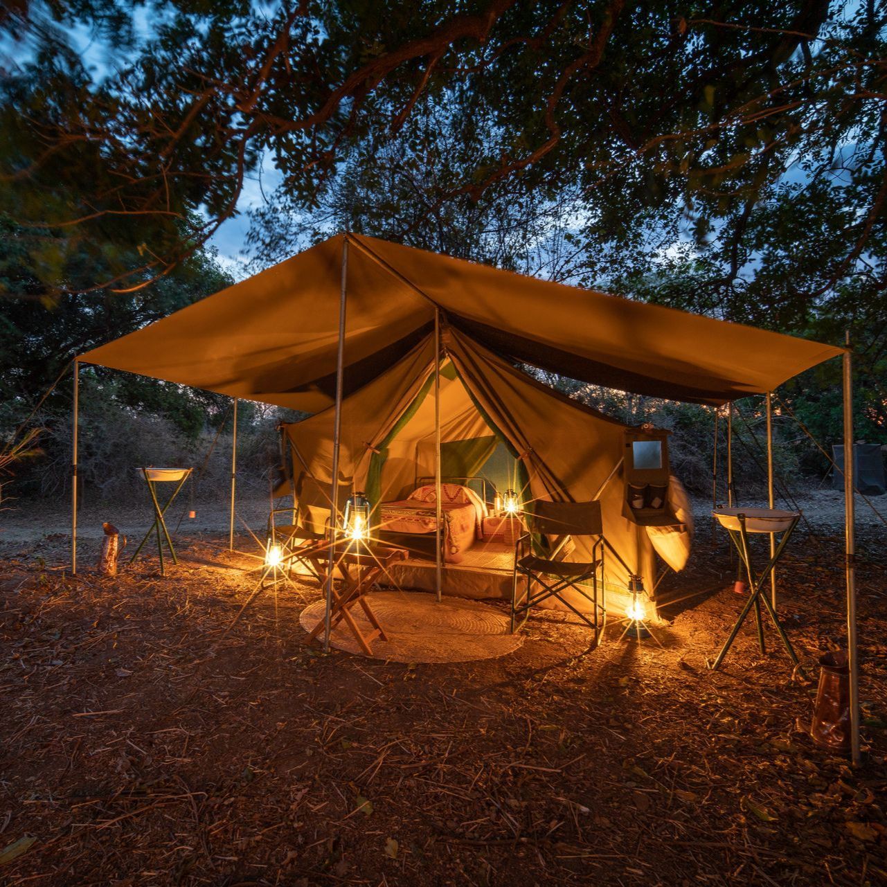After an early breakfast, you will be heading north to start your walking mobile which has become known as THE wilderness experience of the South Luangwa. Your drive is some 90kms to the Mupamadzi River along a bush road, through remote parts of the park. You arrive in camp for lunch around mid-day. The camp is already set up for your arrival with well-equipped walk-in tents. The shower is under a tree and the toilet is a long drop with a wooden throne. Enjoy a relaxing siesta after lunch, before tea and going for a walk around camp in the afternoon, to return for sundowners and dinner in the open under the stars! MOBILE CAMP