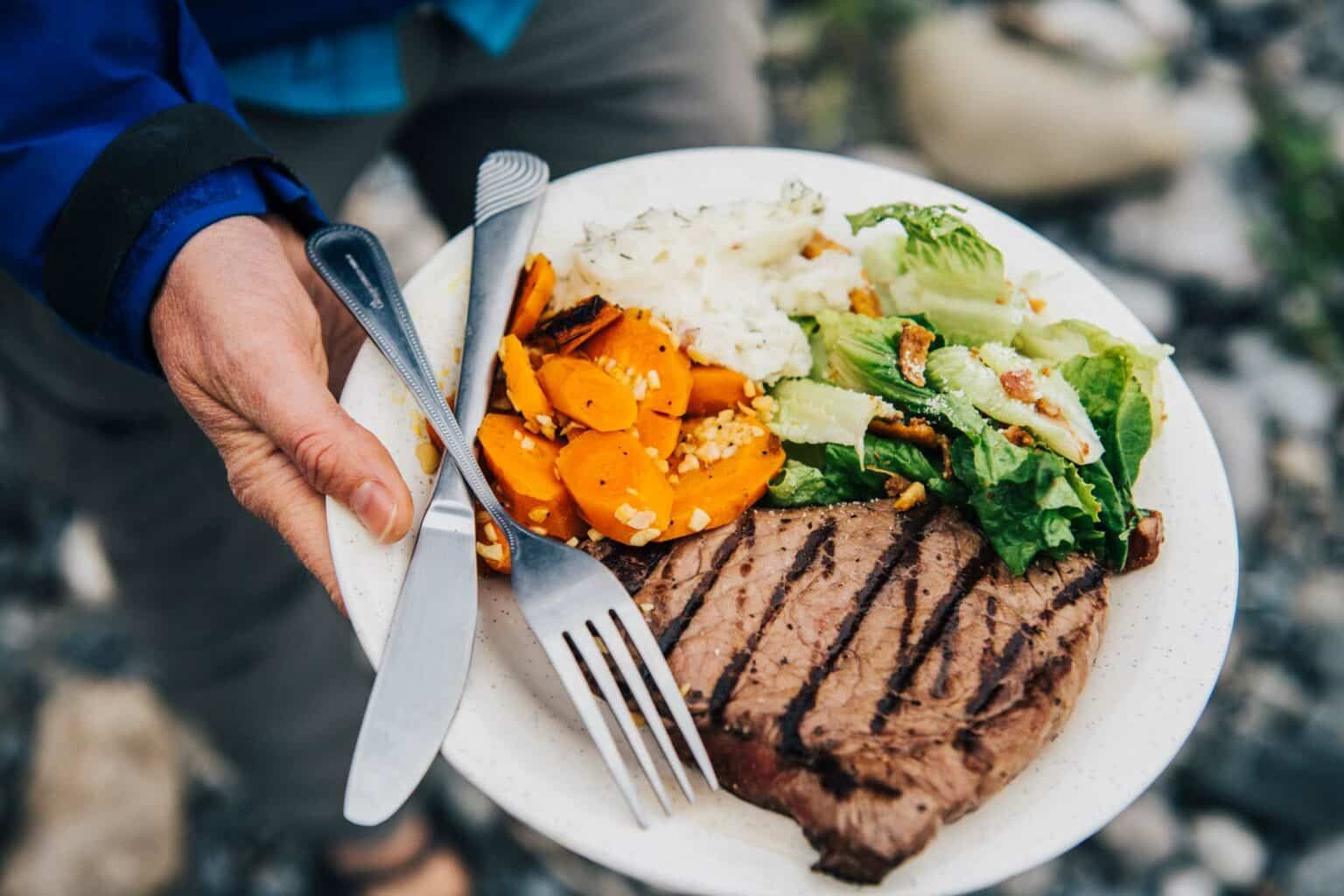 You can expect to eat as well or better than you do at home. You’ll be fed meal after meal of impossibly fresh food – pork tenderloin, tabouli, cheesecake, cinnamon rolls – all prepared with a portable camp kitchen and open fire.