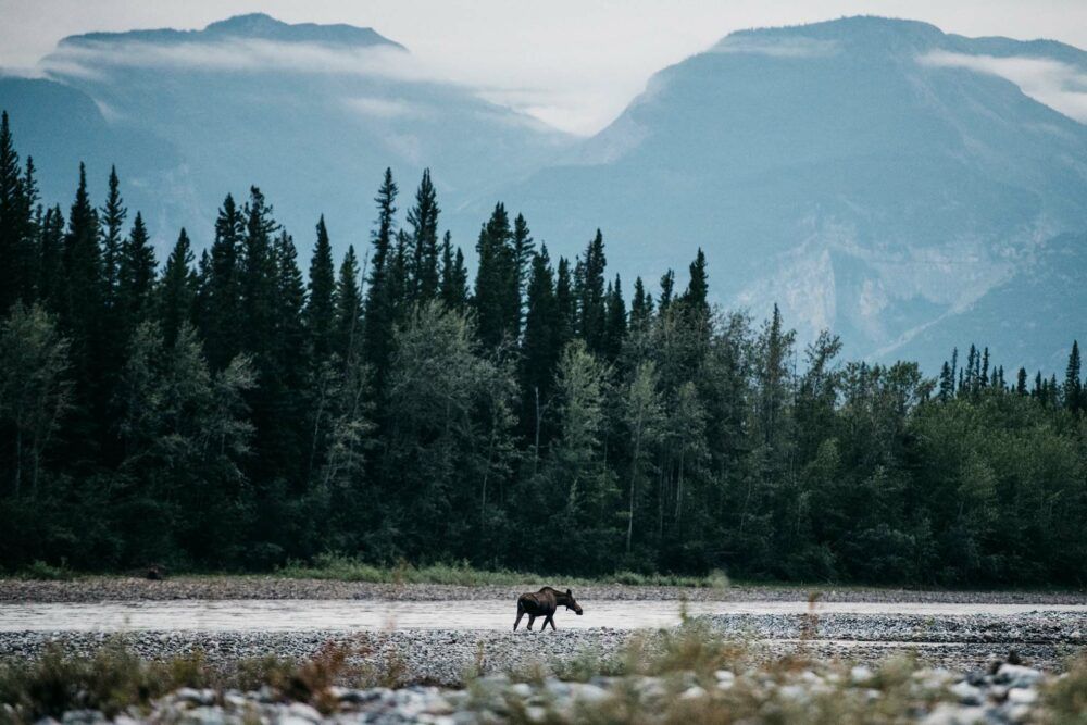 After the waves of Lafferty’s Riffle, we take a quick dip in Kraus’ Hot Springs before bidding farewell to the canyons and entering the braided channels of The Splits. Here a broad valley is revealed and the surrounding mountains, ridge piled upon ridge, form a dramatic contrast to the enclosure of the canyons. Lush boreal forest bordered by steep ridges form a “storybook” setting and provide a sanctuary to moose and bison.