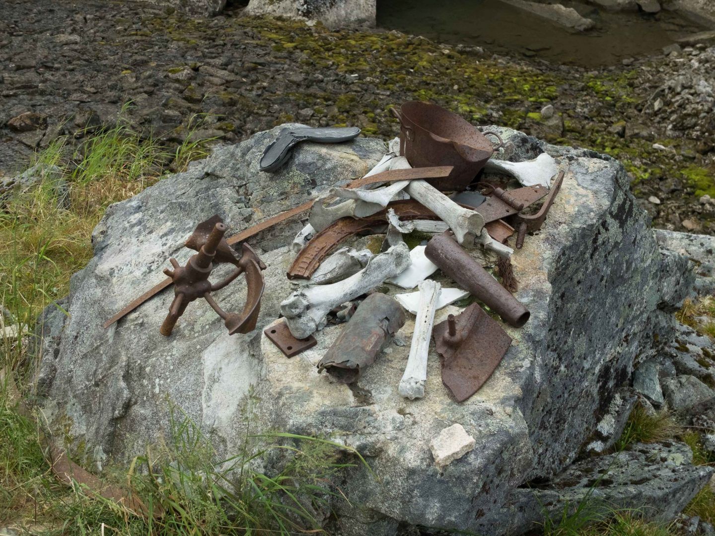 Shortly after departing, we’ll pass through the Enchanted Forest; a region of gnarled trees, twisted and pitted due to massive snowfalls that bury them under several meters each winter. You’ll see many gold rush artifacts littering the trail as it begins to climb towards the Scales, where, after weeks of hauling a ton of goods up from Skagway, 50 kilos at a time, the stampeders began to toss aside the non-essentials. Surprisingly the “Treeline” sign is surrounded by trees, proof the weather was colder in 1898 than today. But not much further along, the last tree appears, and then disappears, and soon there is nothing but rock in all directions. This is where the avalanche that claimed the lives of many gold miners in the spring of 1898 occurred, and the victims are buried nearby.