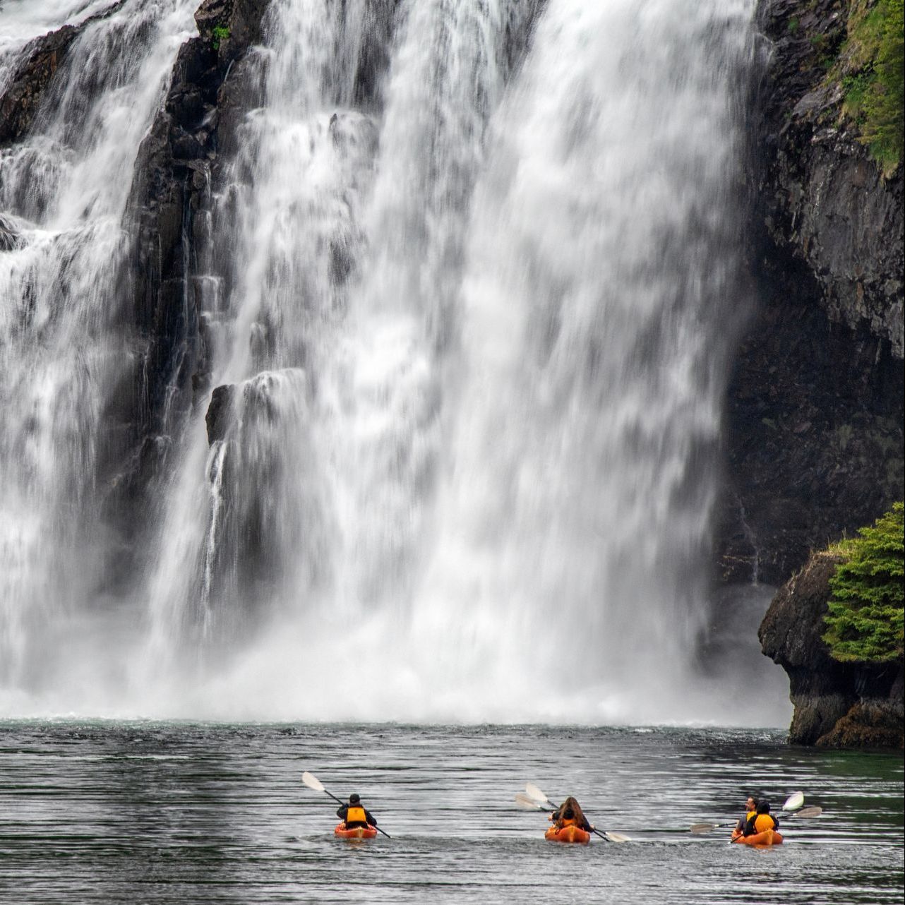 There are places on the planet that completely overcome you. This is one of them. The beauty. The peace. The sense of place you feel. Misty Fjords National Monument represents nearly every ecosystem found in Southeast Alaska. And that alone is a lot to consider. Glacial valleys filled with sea water. Sheer 3,000-foot cliffs. Sea birds, brown and black bears, mountain goats, Sitka black-tailed deer, all find safe haven here. Kayak in Walker Cove or Rudyerd Bay and you find it’s just as easy to paddle and go, as it is to sit and float and take it all in. Or skiff to the base of a waterfall for a fjord released shower. The area’s affectionate nickname, “The Yosemite of the North,” is deserved.