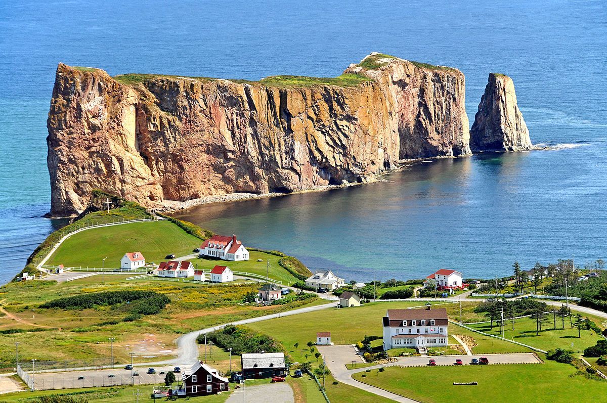Once the largest fishing port in the Gaspé Peninsula, Percé is now the gem of the entire Gaspé region as a resort and tourist town and renowned for the extraordinary beauty of its surroundings. Its prominent geological feature is a great rock pierced with a hole, from which the community derived its name.